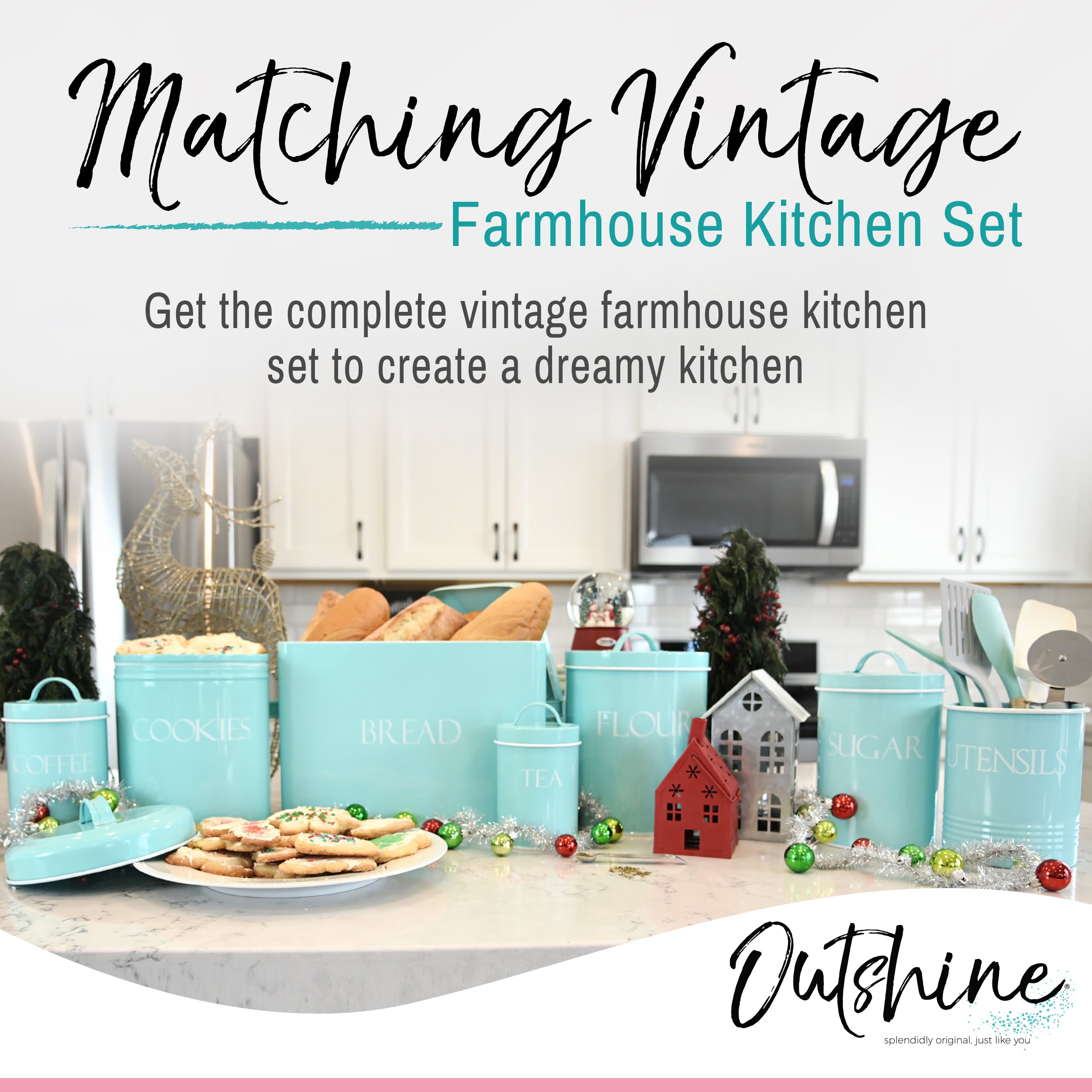 ✓ GET THE VINTAGE MODERN FARMHOUSE LOOK: This adorable tin cookie container is part of our vintage modern farmhouse collection. Choose your pieces from the bread box, kitchen canister sets, utensil holder & salt + pepper shaker set, cookie jar, and pet treat canister. Create the perfect farmhouse kitchen organization look!